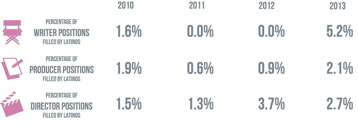 Although the Latino population in the U.S. grew more than 43 percent between 2000 and 2013, to 17 percent of the total U.S. population, participation behind or in front of the camera stayed stagnant or grew only slightly, often proportionally declining. Even when Latinos are visible, they tend to be portrayed through centuries-old stereotypes, either hypersexualized, as comic relief, and/or cheap labor.